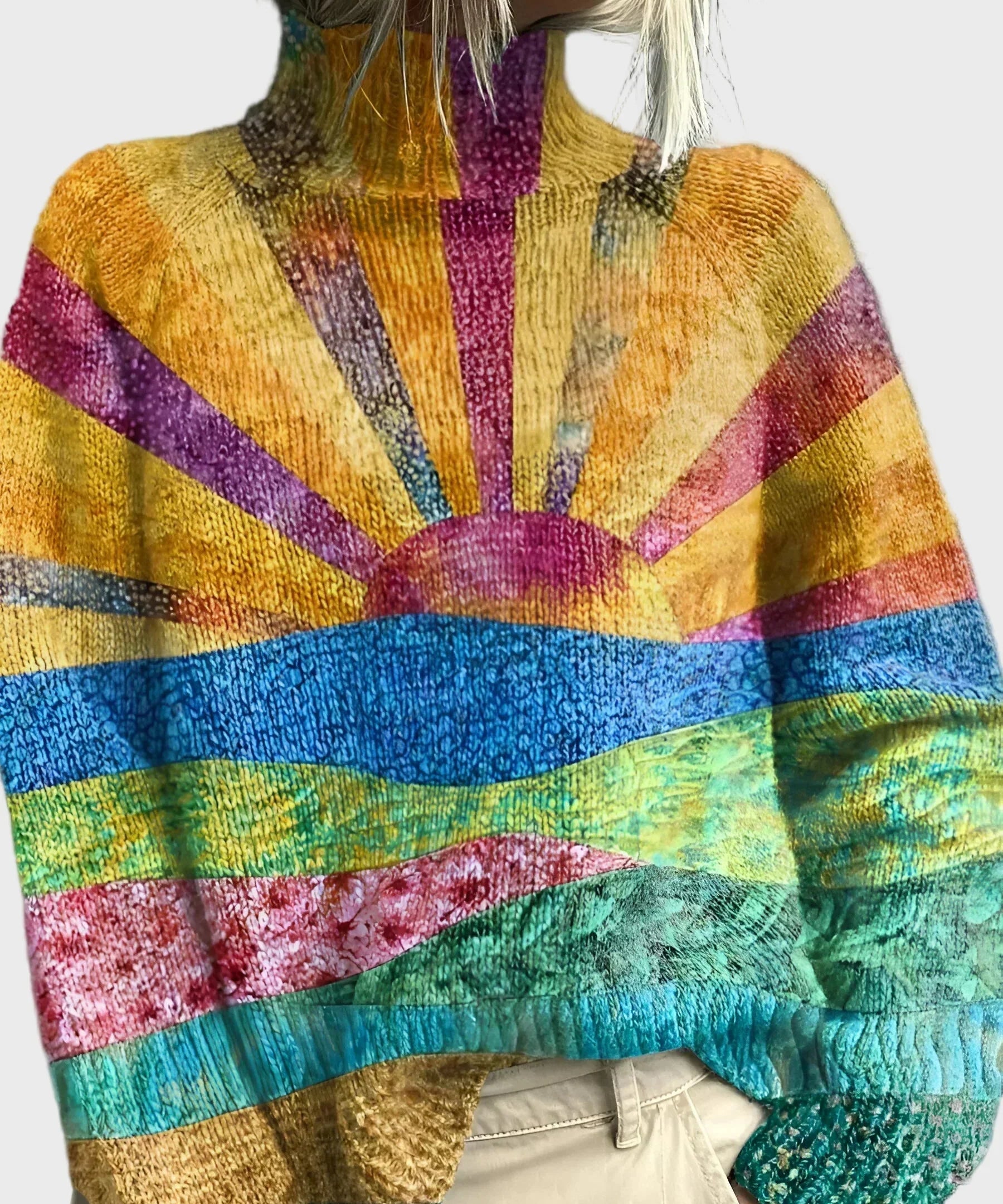 Pletený svetr s motivem slunečních paprsků