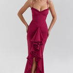 Zajímavé a ženské šaty s přiléhavým střihem, které obepínají tělo a zvýrazňují postavu. Detaily v podobě volánků na výstřihu a v sukních dodávají šatům nádech romantiky a elegance. Ideální na večírky a zvláštní příležitosti, kde chcete vyniknout.