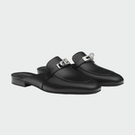 Tyto bílé kožené mokasíny kombinují eleganci s pohodlím a jsou perfektní volbou pro nadčasový, ale moderní vzhled. Bez zadní části jsou praktické a snadno se nasouvají, zatímco kovová spona na vrchu dodává nádech luxusu.
