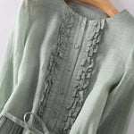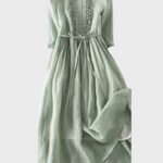Tyto jednoduché a elegantní dlouhé šaty v jemném zeleném odstínu vyzařují svěžest a přirozenou eleganci. S lehkou siluetou a volným střihem obepínají tělo a nabízejí jedinečné pohodlí v každém okamžiku dne.