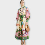 Maxi šaty s pásem a rukávy s volánky